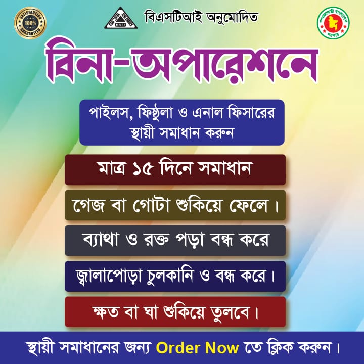 পাইলস কেয়ার ড্রিংকিং পাউডার সেবনে পাবেন স্থায়ী সমাধান(100% গ্যারান্টি) পণ্য হাতে পেয়ে চেক করে পেমেন্ট পরিশোধের সুযোগ রয়েছে।